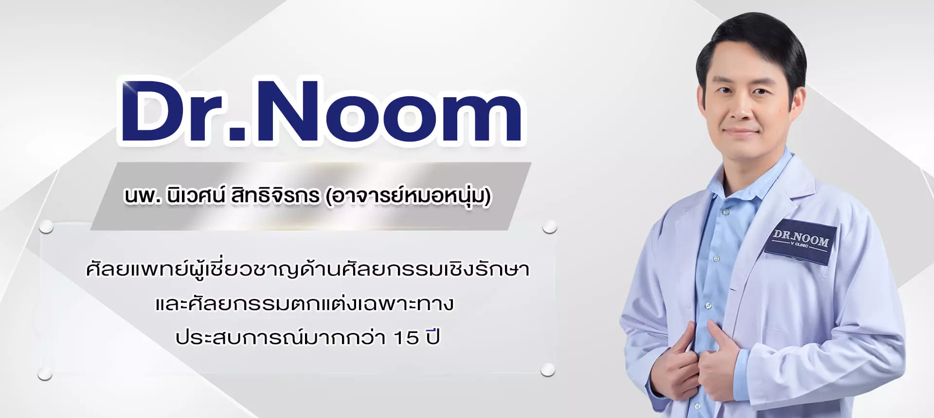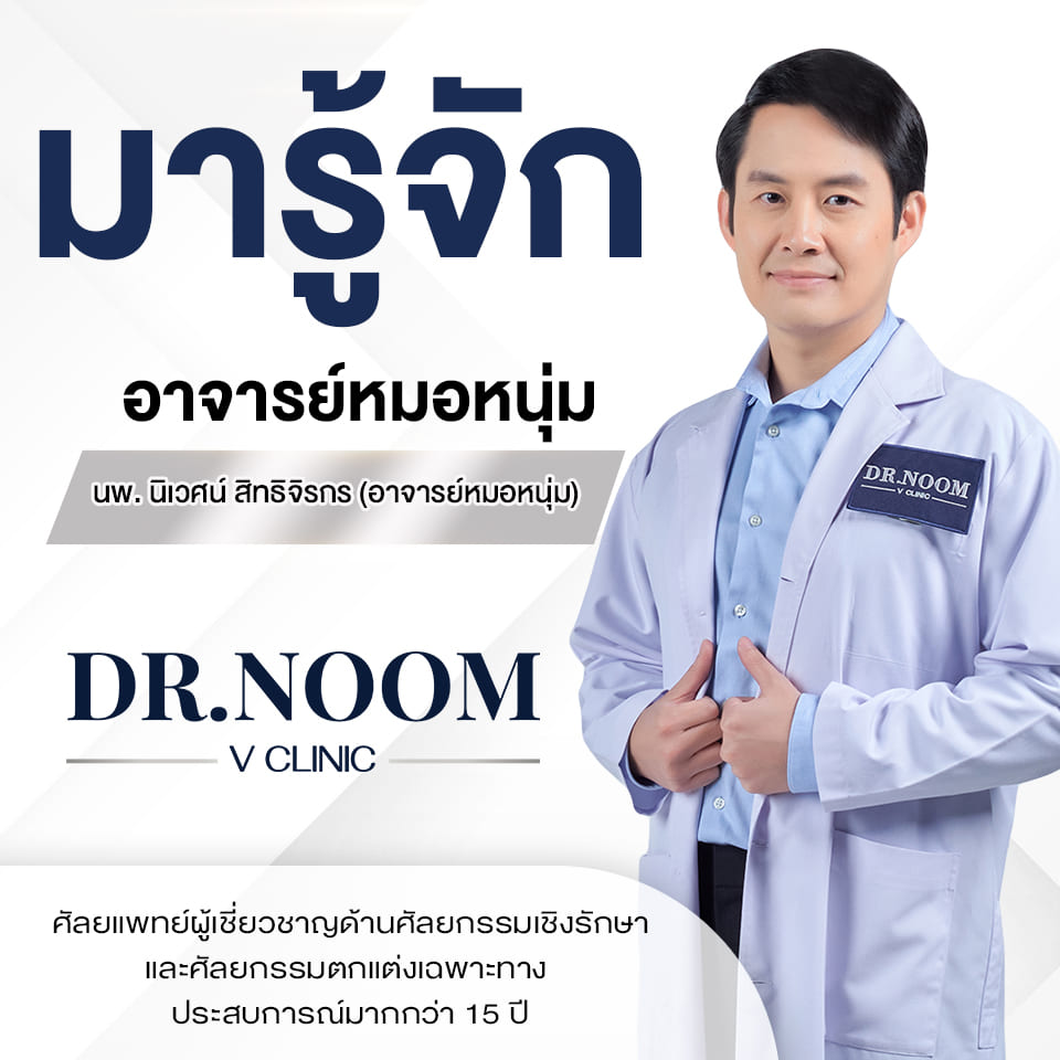 ทาง Dr. Noom V Clinic คลินิกศัลยกรรมเชิงรักษา ดูแลทุกเคสโดย นพ. นิเวศน์ สิทธิจิรกร (อาจารย์หมอหนุ่ม) ที่มุ่งมั่นดูแล ใส่ใจคนไข้อย่างจริงใจ มีการใช้มาตรฐานเดียวกับโรงพยาบาลในการรักษาคนไข้ เพื่อสร้างความมั่นใจกับคนไข้ในทุกกระบวนการรักษา เราต้องการเป็นต้นแบบมาตรฐานของคลินิกความงาม ที่คำนึงถึงความปลอดภัยของคนไข้เป็นสำคัญ และมีคติประจำใจ คือ “ความจริงใจกับคนไข้” และเชื่อว่าศัลยกรรมเชิงรักษาจะเปลี่ยนชีวิตคนคนหนึ่งให้ดีขึ้นได้ มันคือสิ่งที่ตั้งใจมอบให้คนไข้ให้หายจากความเจ็บปวด ทั้งร่างกายและจิตใจ “เพราะรอยยิ้มของคนไข้คือรางวัลตอบแทนที่มีค่ามากกว่าทรัพย์สินเงินทองใดๆ”