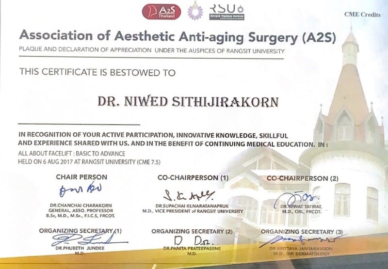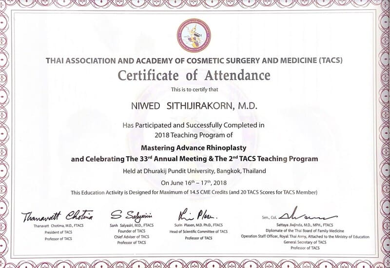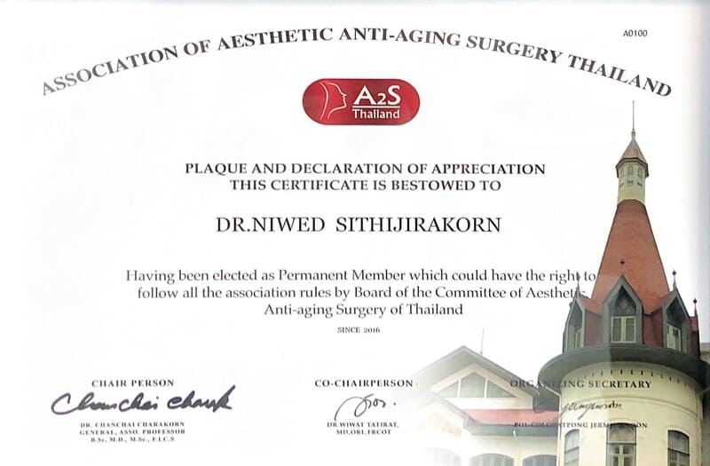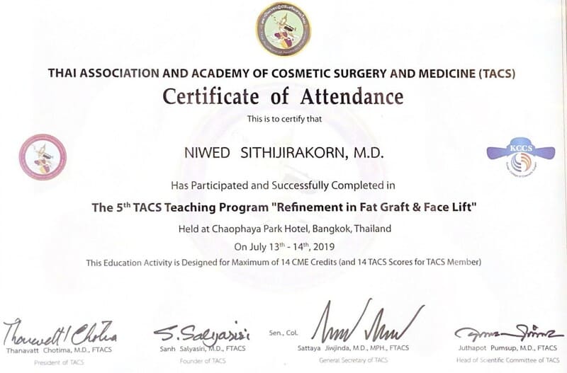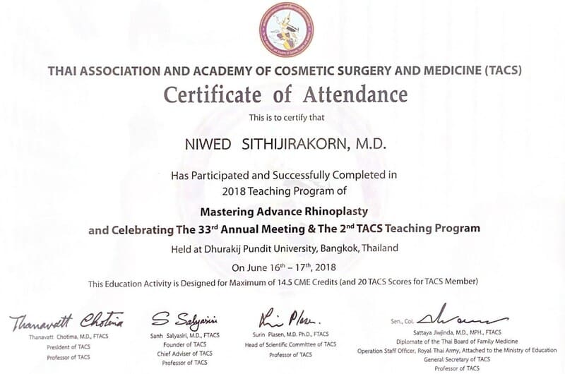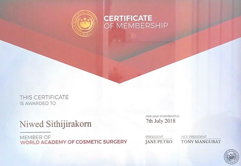 - สมาชิก International membership of World Academic of cosmetic surgery