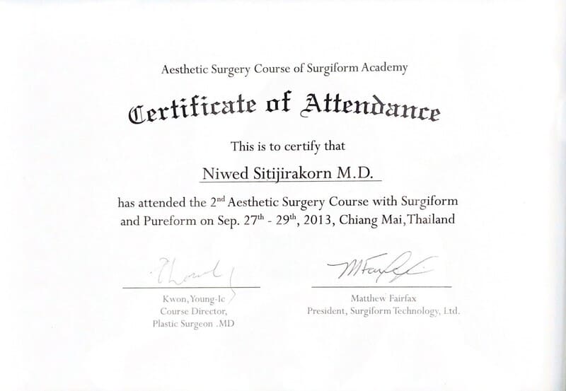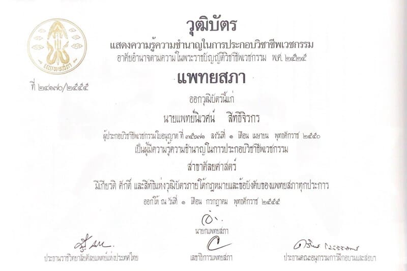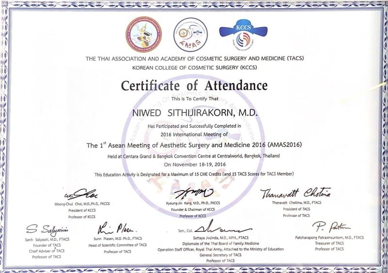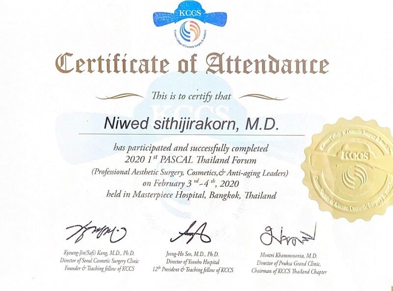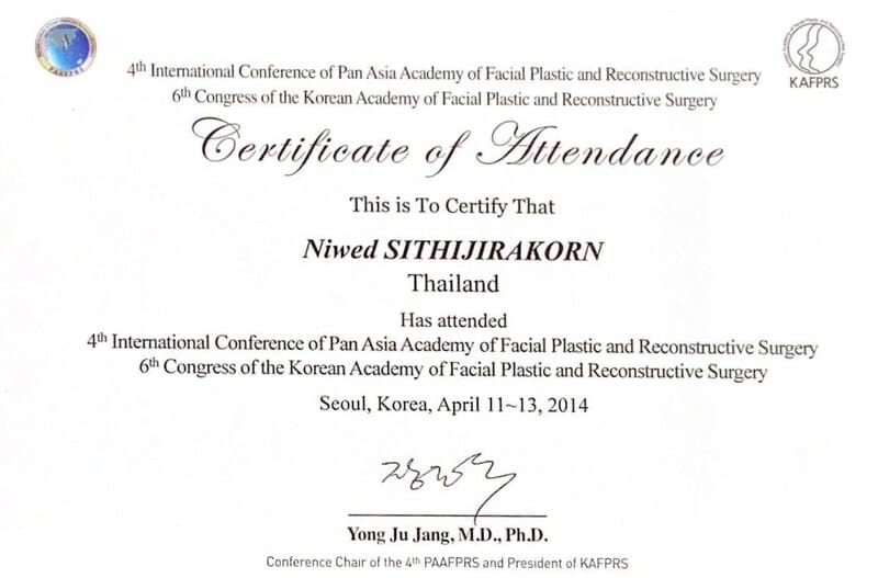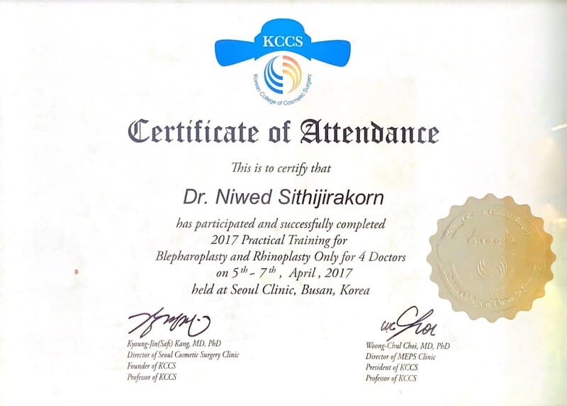 - สมาชิก International membership of Korean College of cosmetic surgery and medicine